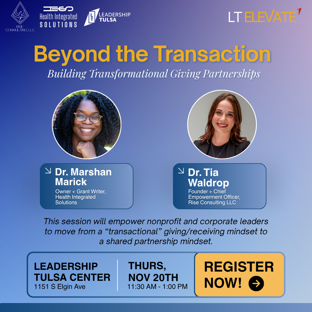 This session will help nonprofit and corporate leaders shift from transactional giving to building authentic, mission-driven partnerships that create shared value and lasting community impact. Through engaging discussion and real-world examples, participants will explore practical strategies for fostering trust, aligning goals, and strengthening relationships that go beyond funding — laying the foundation for sustainable, collaborative impact. Facilitated by Dr. Marshan Marick and Dr. Tia Waldrop.